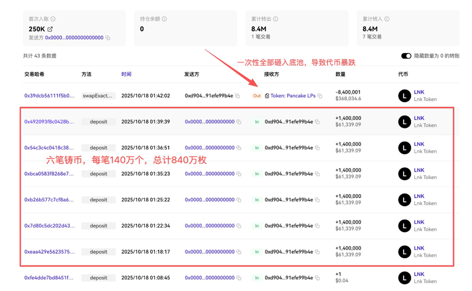 Chapter Four | LynkCoDAO: Six Consecutive Mints Totaling 8.4 Million Tokens — The Most Violent Collapse Occurred After Midnight